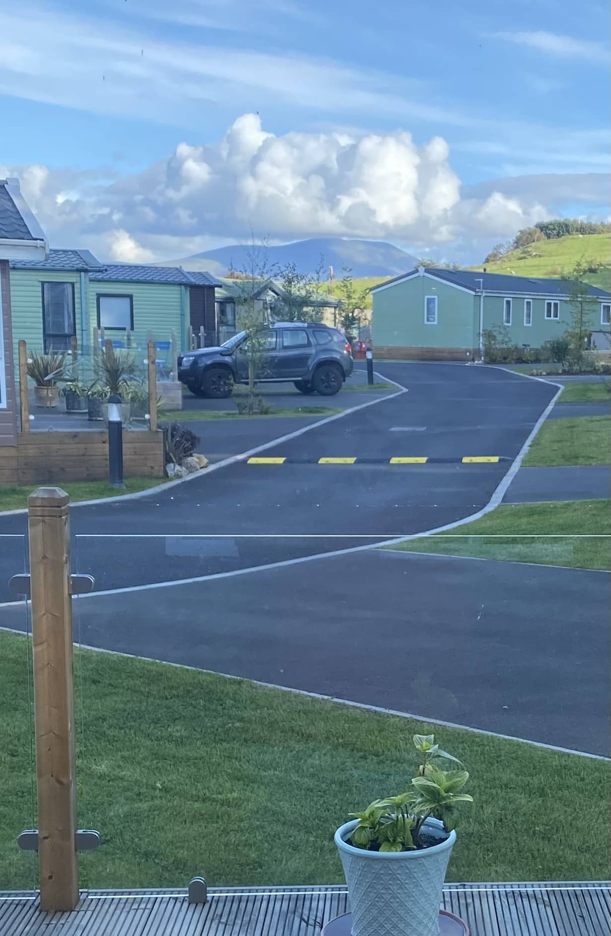 Wrap around decking with views of Skiddaw Mountain at front and views of the Solway at rear
