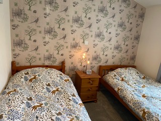2 double bedrooms, one with king-size storage bed, walk in wardrobe and ensuite, one with pine twin beds, bedside cabinet and walk in wardrobe.